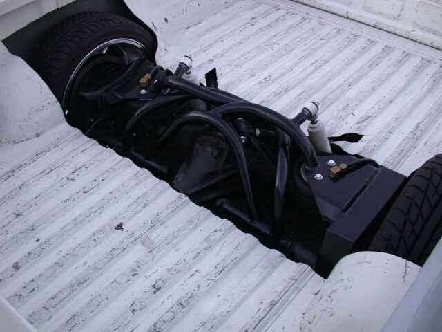 Reverse triangulated 4-link, Slam Specialities RS62 in the front, RS72 in the rear, 10 switch box, 7 gallon 5 port tank, Viair 450, Tranny X-member, Custom notch crossmember, 1/2" lines and valves. Custom brackets and crossmembers done by Sean and the crew of Suspension Dimension.
