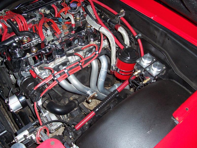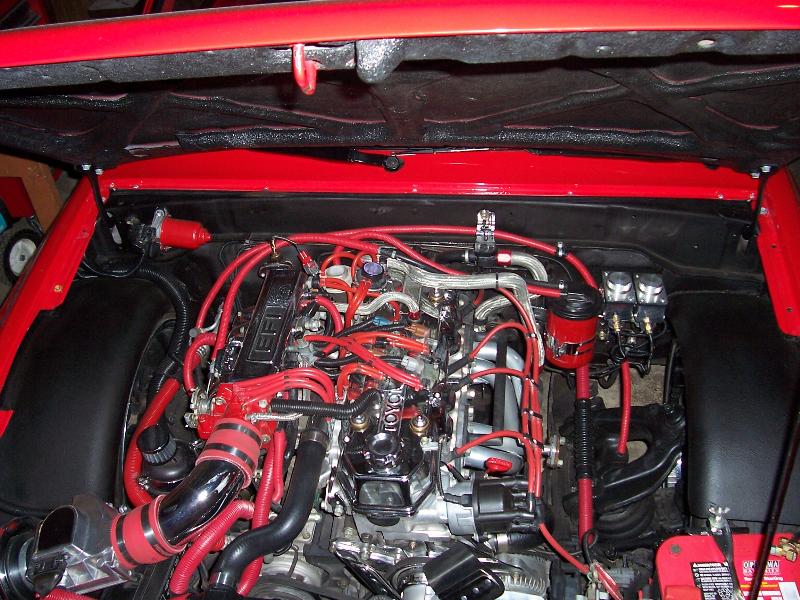 Painted Red; fuel filter, throttle body, distributor cap, and magnetic spark igniter.