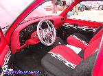 Everything wrapped in Cardinal Red and Black tweed. Door panels and 95 Honda Civic Seats are Red and Black with Silver Carbon Fiber flame to match exterior paint. Seats and Panels done by American Auto Apholstery in Corona, Ca. My Dad made the console, and my Mom made the headliner. Everything else was done by myself.