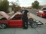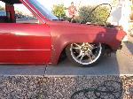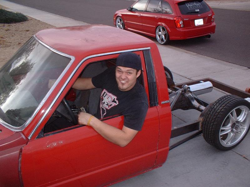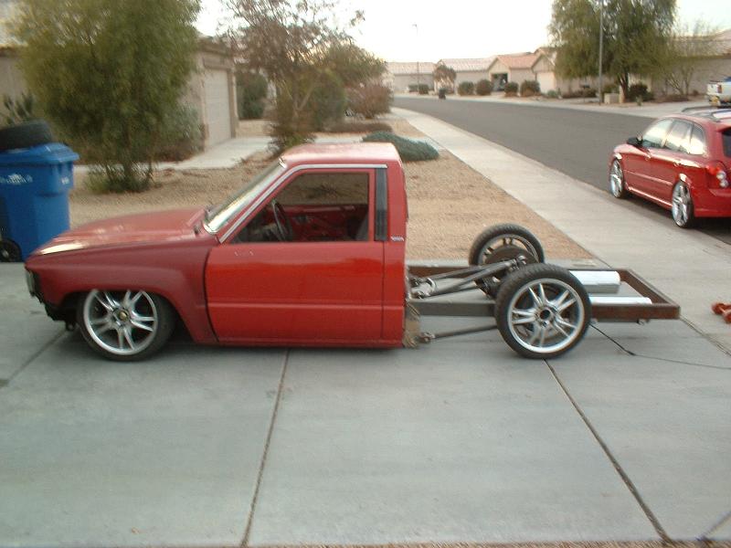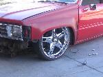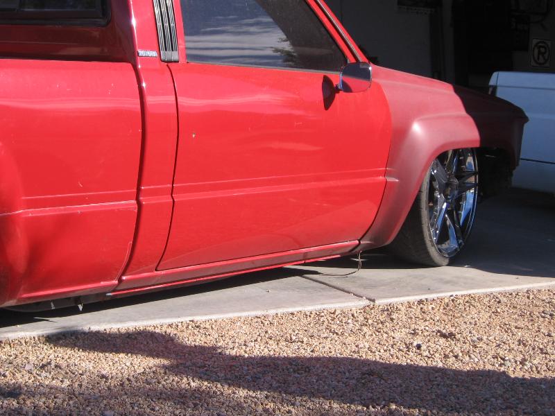Stripped to bare metal: shaved doors, cowl, mirrors, gas door, grant skin, range rover taillights, suburu hood scoop, tacoma bumper, suicide doors.
