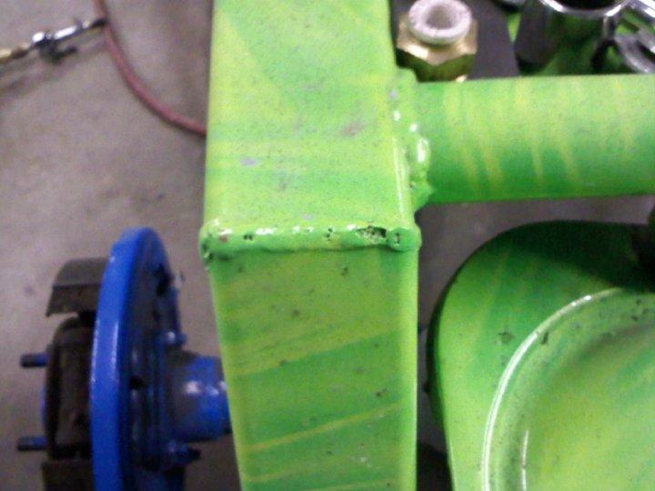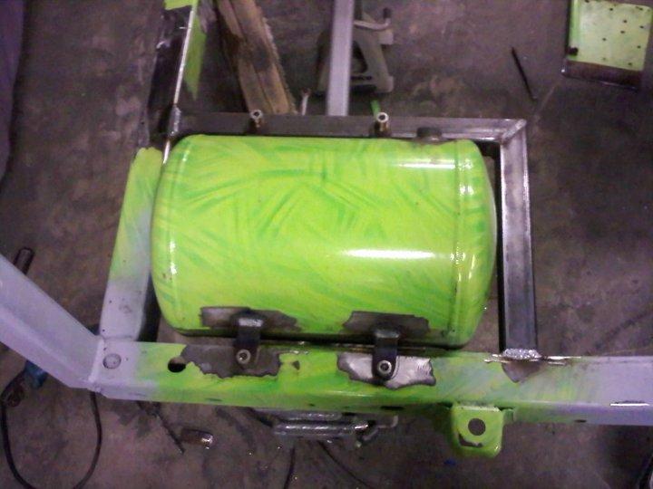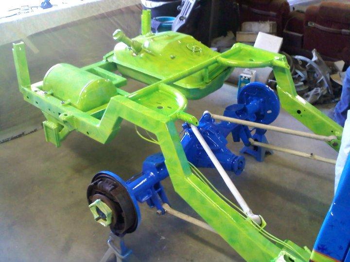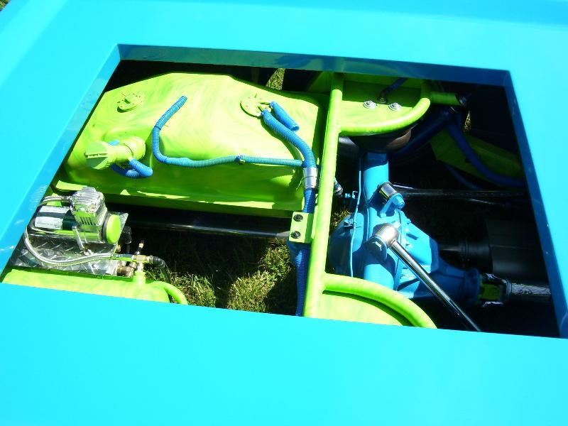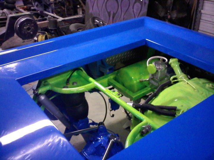 full air ride with chrome upper control arms, chrome 4-link, 1/4" SMC's with 3/8" line...Frame is fully painted and air brushed by Dustin as well