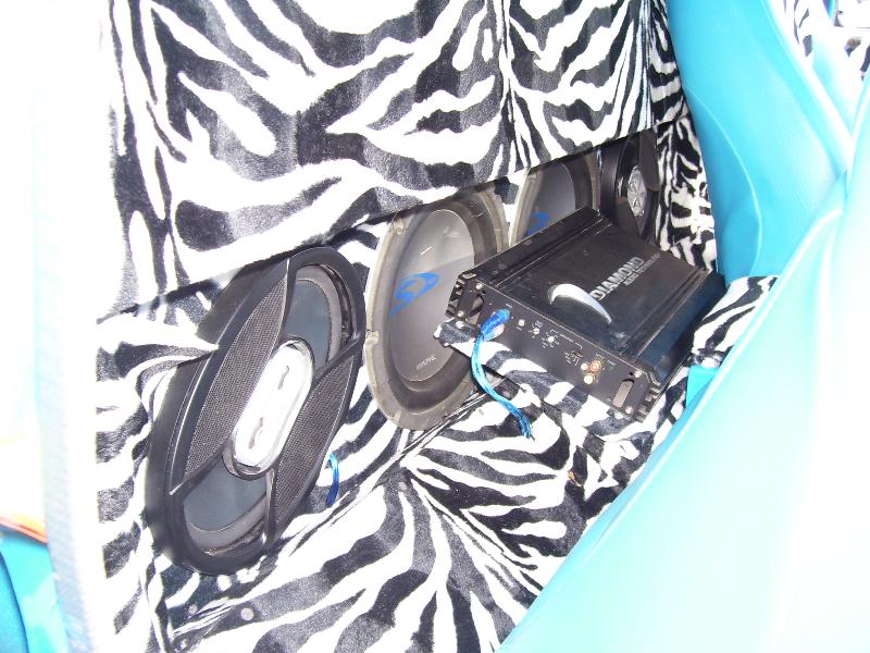 JVC receiver, with Infintity reference 6 1/2s in the doors and 6x9's in the bed box. Diamond audio 300w amp pushing two 10" alpine subs in bed box. All rewired and installed by me...