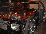 22r bored out to 4" (yes 350 flat top pistons) with badger sleeves, cross drilled water jacket between cylinders for cooling, shaved head with 2 links out of timing chain, OCG cam, centerforce clutch, lc distributor, and many other misc things, painted HOK kandy tangerine & cobalt blue over silver base. OH YEAH!! FITS UNDER THE STOCK HOOD W/O A Z & W/O LOWERING THE MOTOR!!