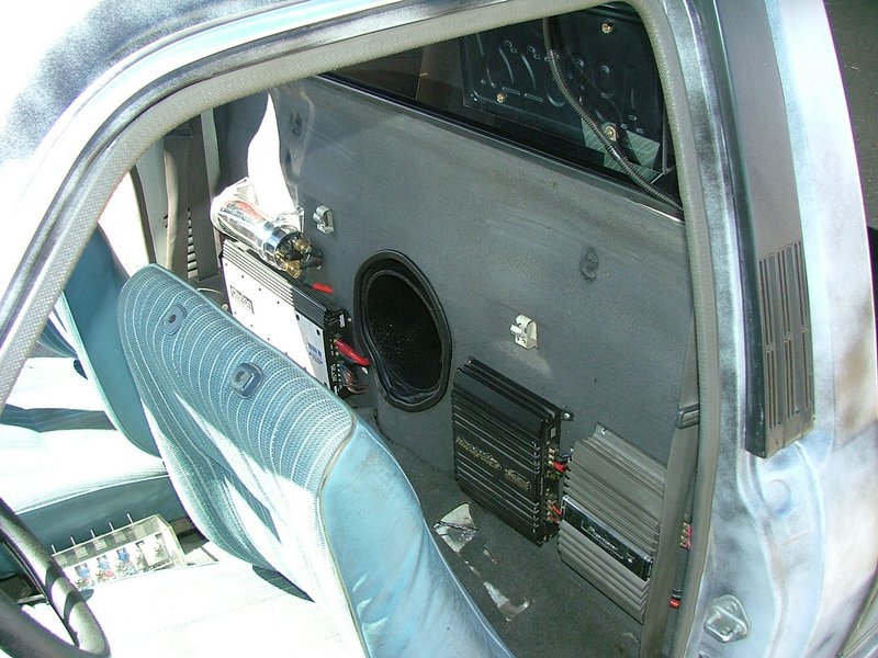 glass door pods, sub enclosure & amp racks/cap enclosure, dvd monitor deck, all mtx gear, 6.5" components in doors, 4" coax in dash, 2 slimline 12's, 1200w sub amp, 600w high end amp, 8 farad cap, yellow top optimas