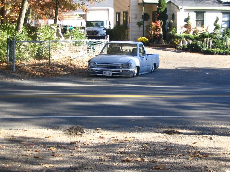 primed grey,4runner grill,4x4 fenders and hood,3.5in bodydrop,sectioned oil pan,step notch,tubbed out firewall,new all chrome 2wd yota bumper/valance,new bed,shaved tailgate handle,mirrors,tailgate,antenna,wiper cowl vents and squirters..more to come