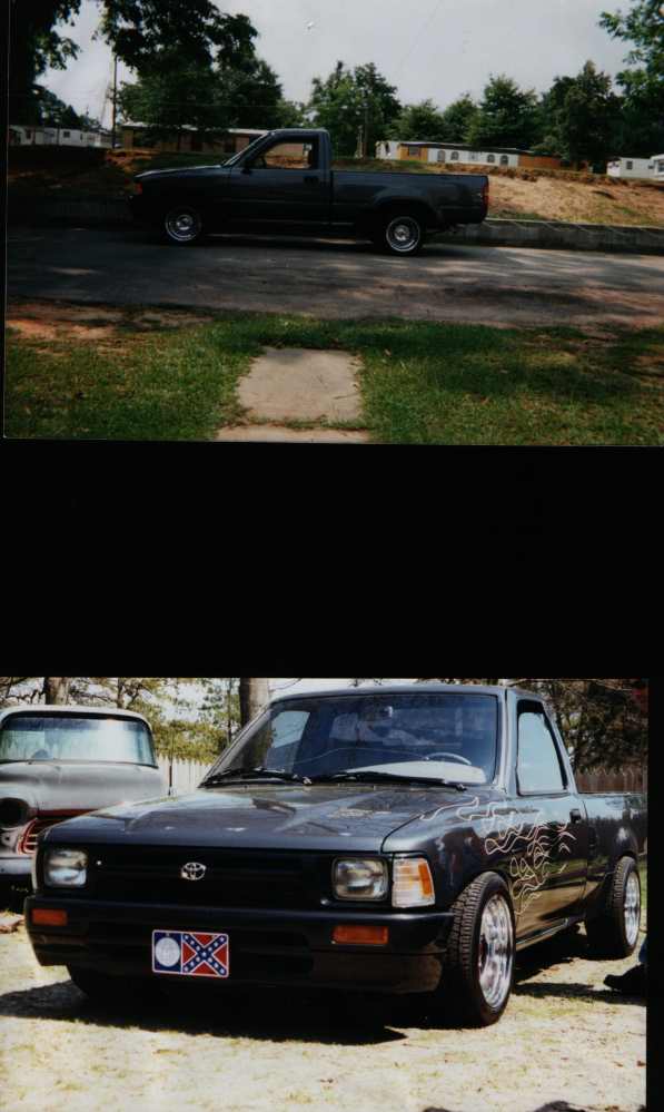 full 4runner conversion..frenched power antennae..4runner side mirrors..shaved and relocated fuel filler door and nozzle...bed tubbed with canted l plate box and frenched exhaust....custom hand made bed cover and taililights ...primer....K-200 for ever shiny sucks