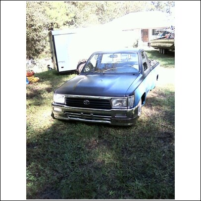 Black and blue right now paint coming soon. Shaved tailgate and roll pan, and antena. 4 runner front end.