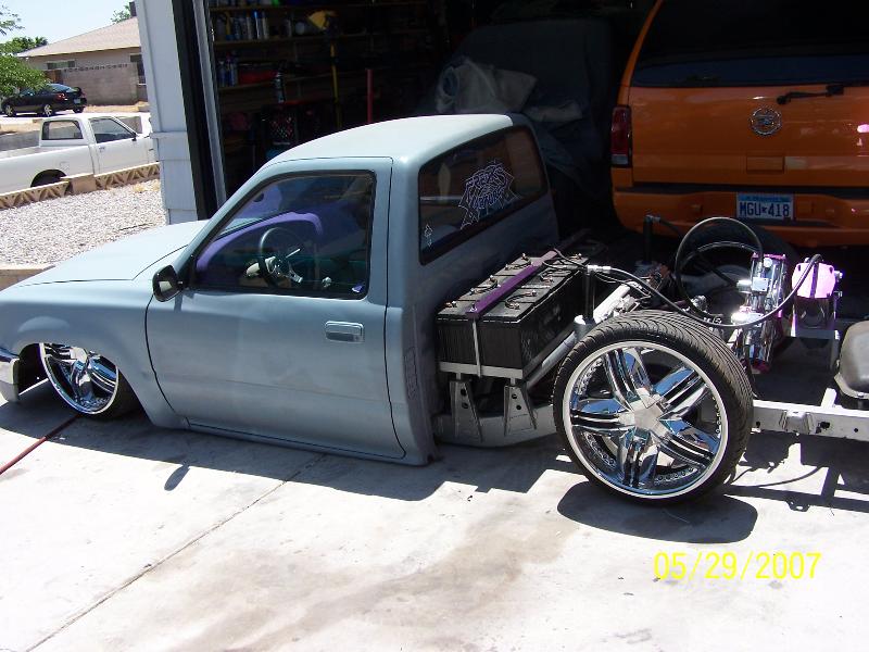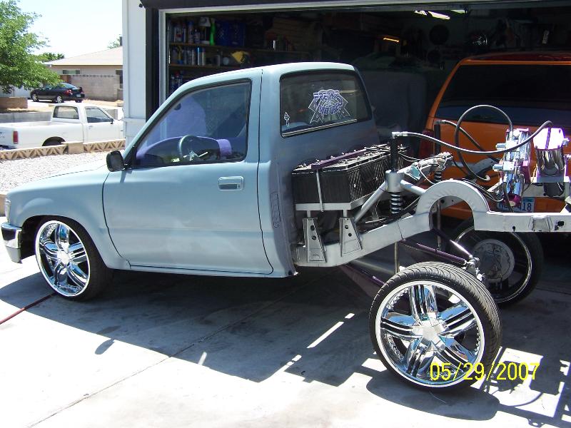 bodydropped 4 inches with geo metro break booster subframed rear end with 4 link all painted purple and silver. custom madem upper and lowers all tubular