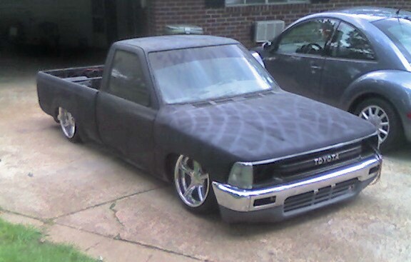 Shaved, tailgate welded shut, cowl welded to fenders. hood welded to fenders, fenders cut down behind the wheel to open with the hood, shaved wipers.