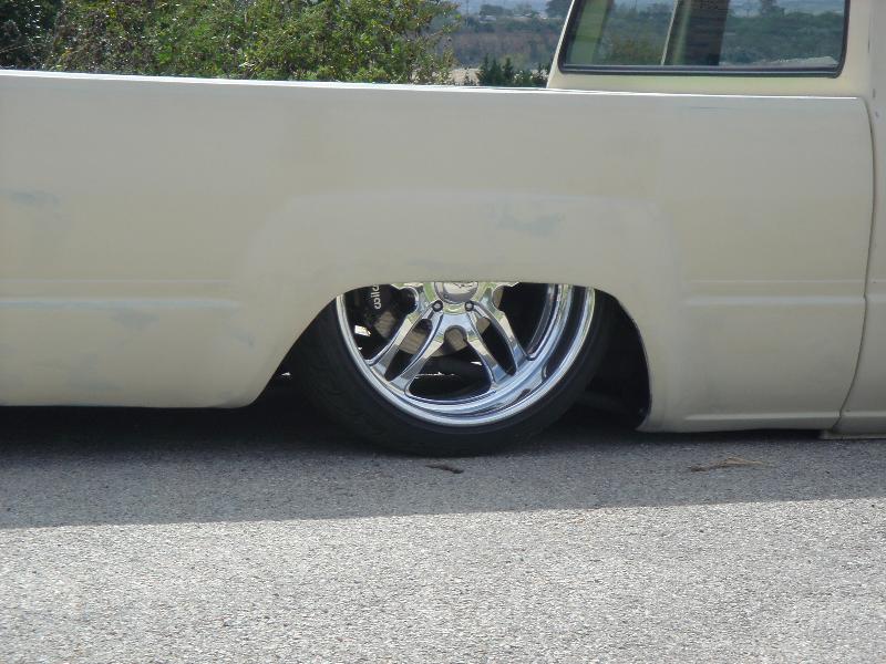 shaved doors, mirrors, wipers, gas door, bed seam, and driprail. closed bed. modified x-tra cab windows. modified, suicide doors. added sunroof and recessed frame. modified 1933 ford coupe hood. custom horizontal grill. toyota tacoma crystal clear headlamps.