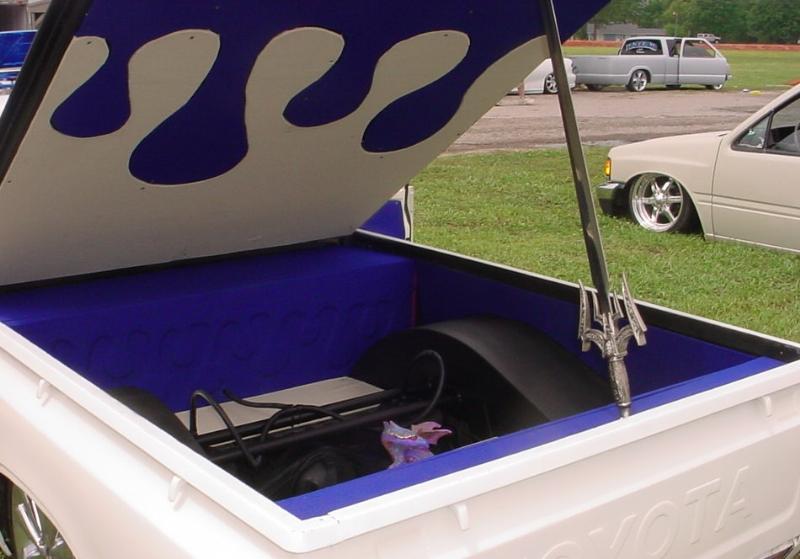 keepin it pretty much stock with a mint green metallic paint job and fat blue flakes, 20s in back 18s in front,