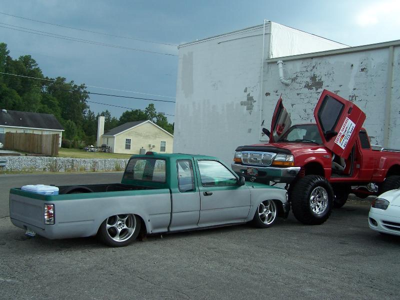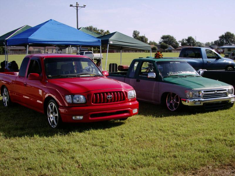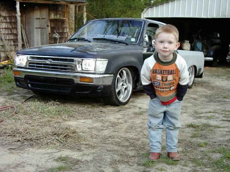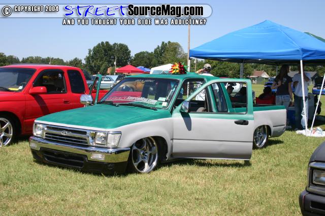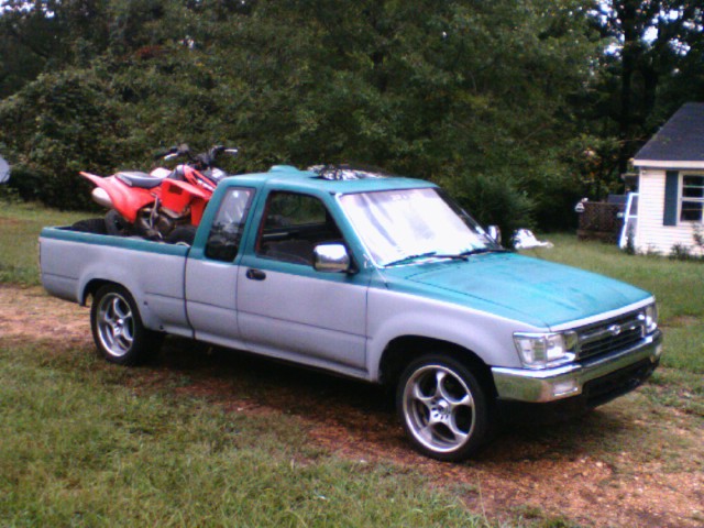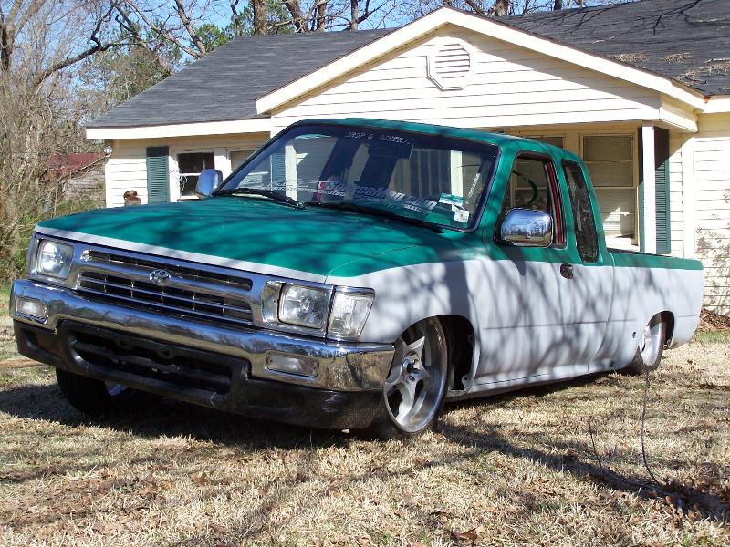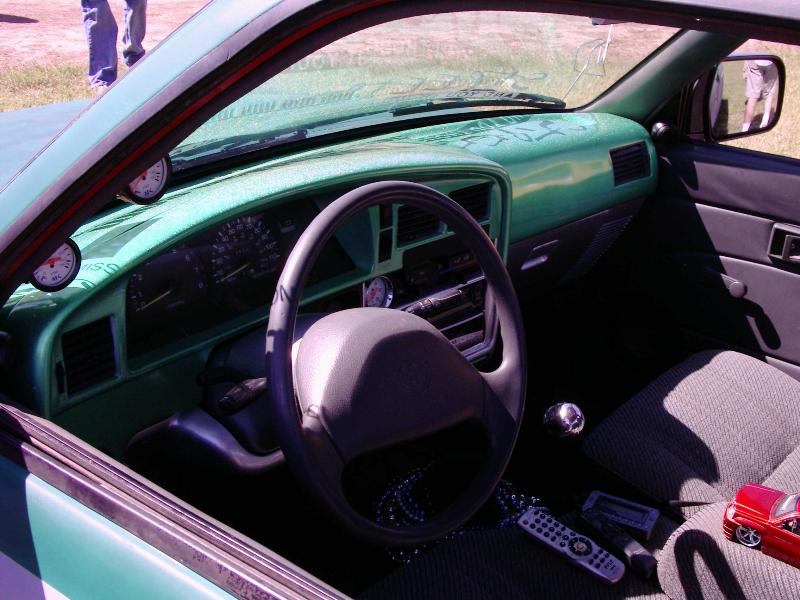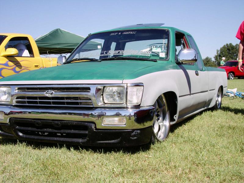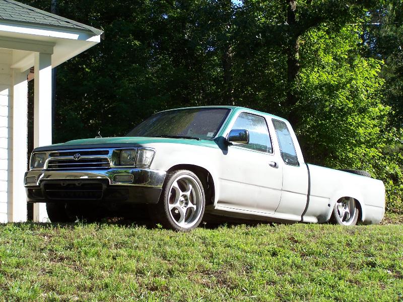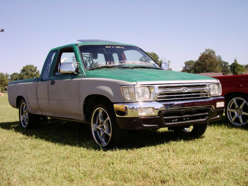 4x4 fenders and bumper 4runner valance clear corners , fake hid headlight conversion the glass ones! shaved gas door. shaved tailgate handle, roll pan molded in. Honda Civic door handles with hidden button to pop doors. 4 runner mirrors. sun roof