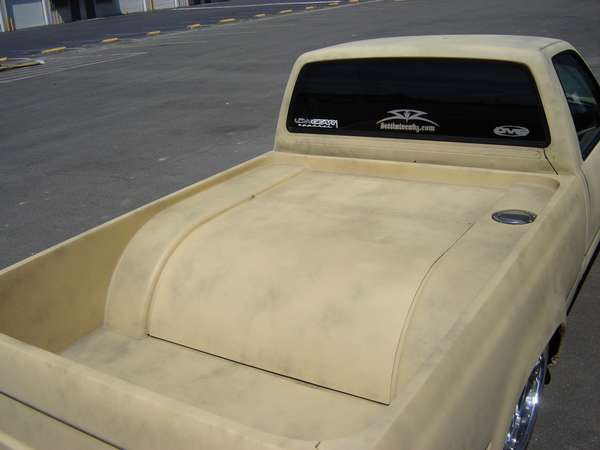 shaved everything. sheetmetal bed w/ motorized section. 4-runner headlights. modified phantom grill.