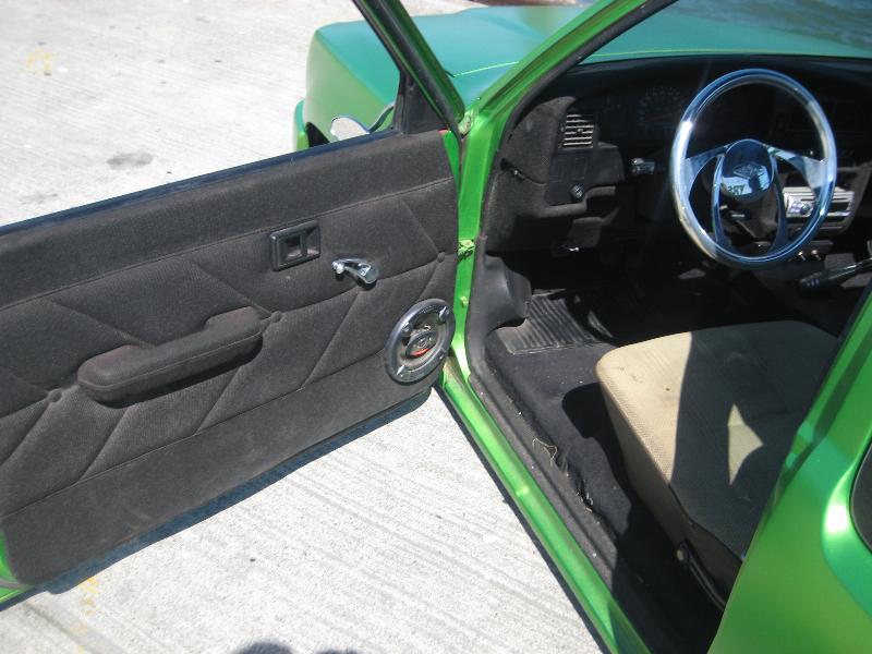 all fiberglassed and smoothed and painted dash, 70s toyota bench seat, billet bad stering wheel and fff mirror and door handles, window crank, and dome light