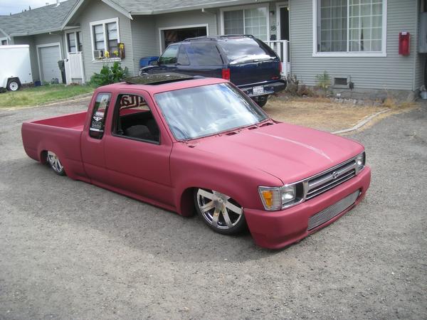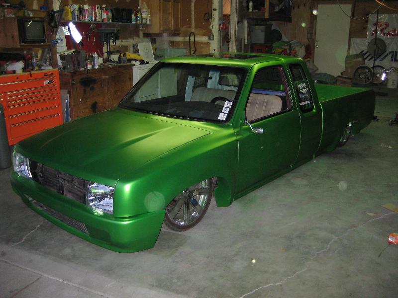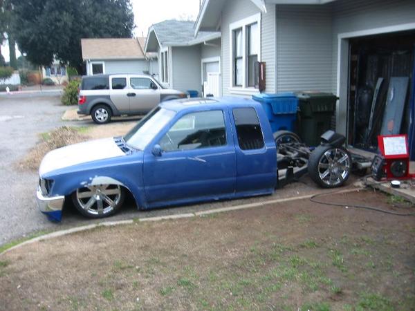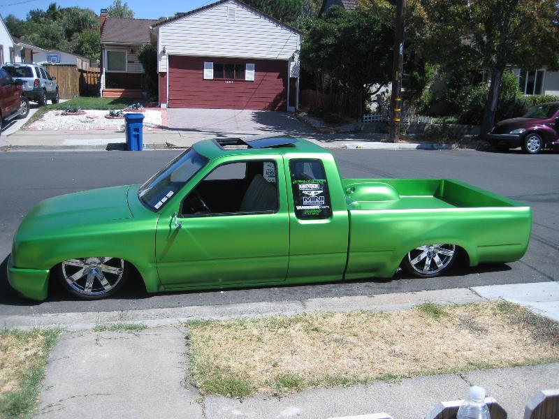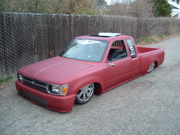 fully shaved, 97 taco front end, i built the bumper based off a grant one, made all my own grills, capped all inner fenders, sun roof, arlen ness mirrors, harley gas cap, 47 chevy LEDS, one off air tank made by me , fully shetted bed shaved cowl, much more