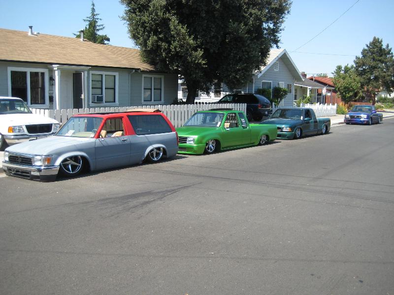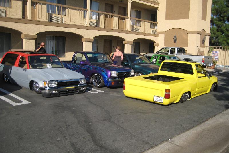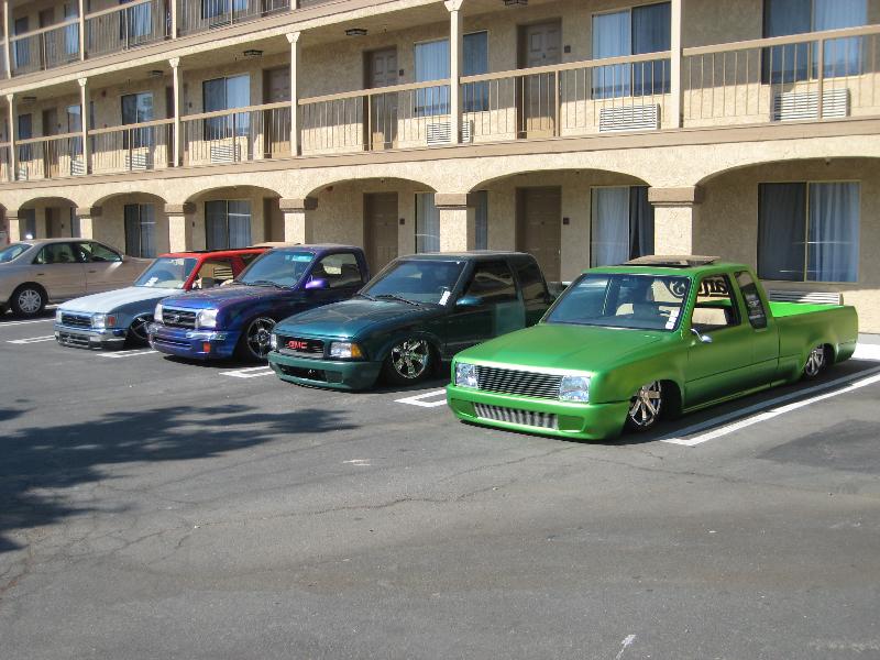 car show at the hotel 3 more trucks and cars were parked away all together6 mini 1 fullsize 1 bomb and 1 muscle car bagged