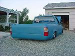 Bodydropped 4 1/4" (a stock floor and stock hood with some mild channeling), grafted in T-100 taillamps, custom combo formed to match the contours of the lights shaved the hell out of it. Custom sheetmetal bedfloor. Shaved firewall.