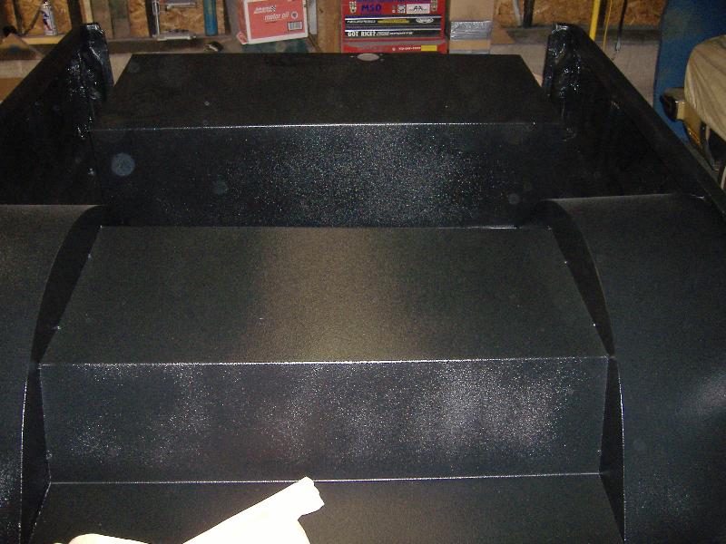 new tranny crossmember,some new steel in the rear to fix the rusted out parts of the frame, gas tank relocated to the rear between the frame rails,air tank mounted in the rear between the rails, z'd front clip and body dropped.