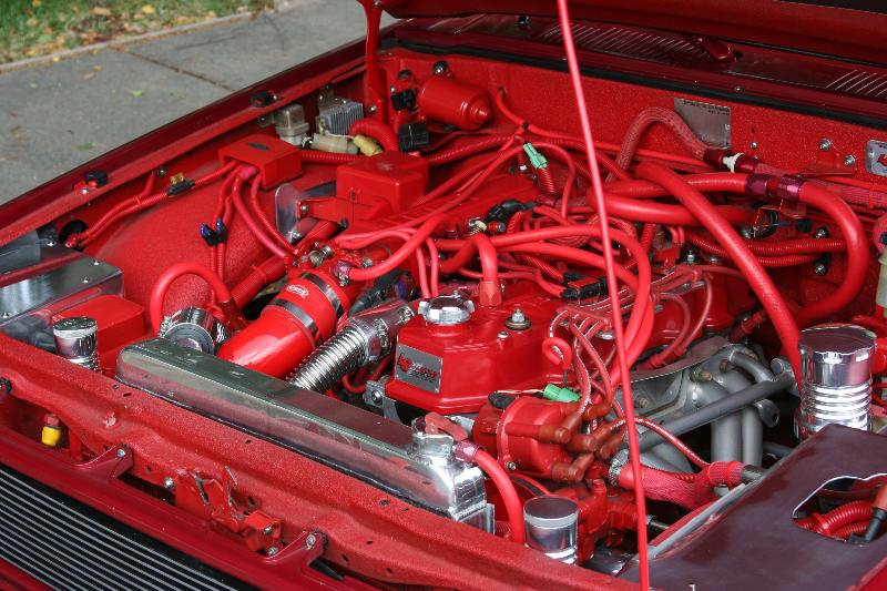 LC's Pro Street EFI 2.5L,w/ big bore throttle body,ceramic coated headers,under drive pulleys, all powder coated 0r painted w/ POR-15, 9.5 lb aluminum flywheel, pro clutch & short shifter,custom Griffin aluminum radiator w/ CoolFlex hoses,& a Spal 16'' fan, K&N , & Borla muffler.Billet cased GM 12SI 150amp alternator