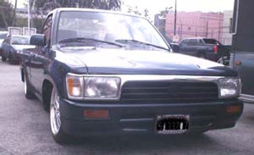 4 runner lights,grill,fenders 2wd bumper/valance-shaved fuel filler door,tailgate handle-roll pan -PPG green w/HOK blue metal flake paint&body - BODY PROS Garden Grove CA 4 sale