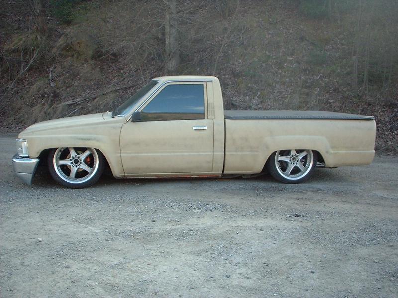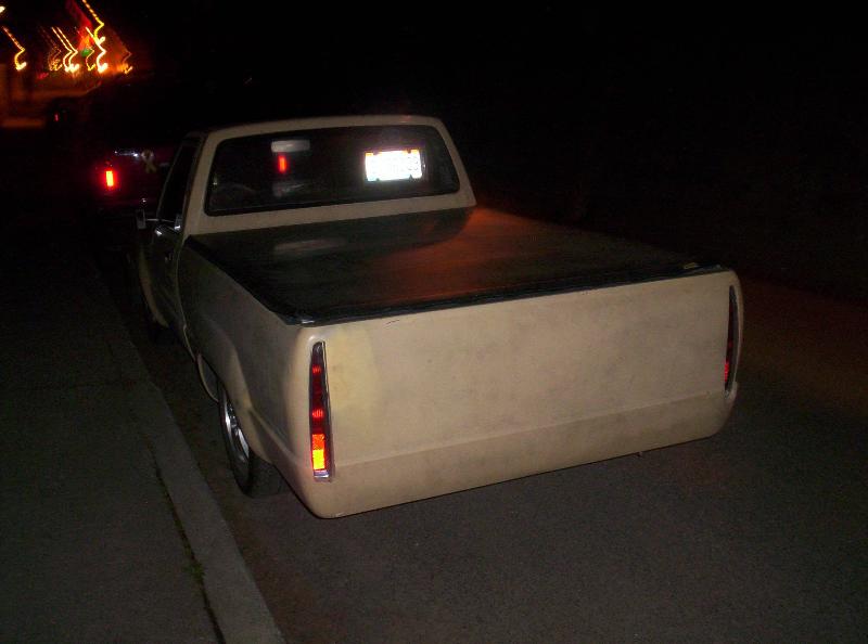 four wheel drive four runner fenders. 1994 cadillac tail lights. shaved gas cap. shaved door handles. shaved everything!. crome four runner grille and bumper. full neon blue under body kit. blue eliminators in the clear corner lights. alpine security alarm. frenched in liscense plate in the rear skin. soft toneau cover.