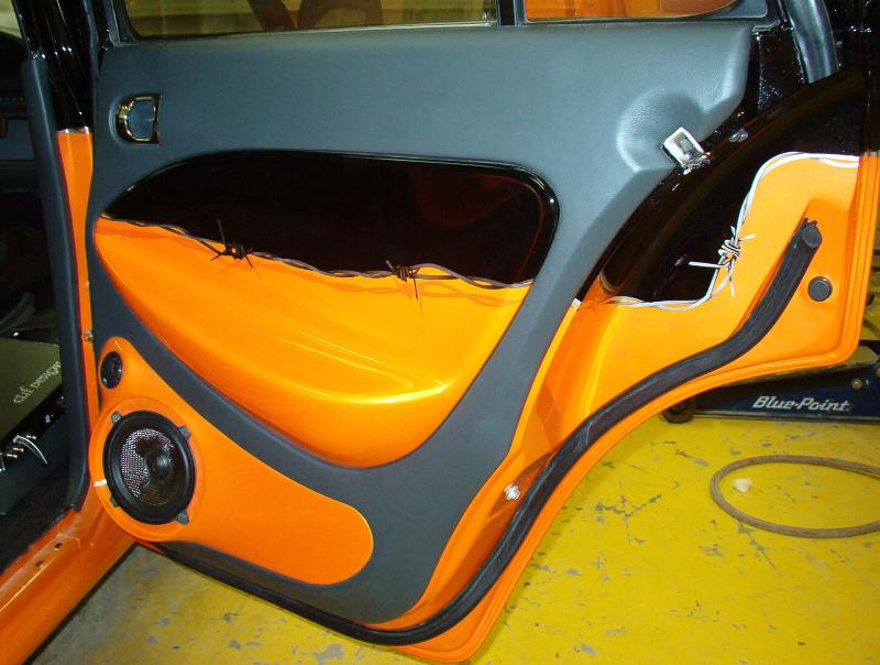 R-M DIAMONT BLACK WITH FLAKE - ORANGE SHERBERT AND A LITTLE BARB-WIRE SEPERATING THE 2 AND TWISTING UP INSIDE THE JAMBS