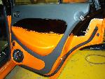 CHARCOAL KATZKIN - B.A.D. ONE-OFF STEERING WHEEL - DOOR PANEL SECTIONS FROM SOME KIA, FIBERGLASSED AND PAINTED