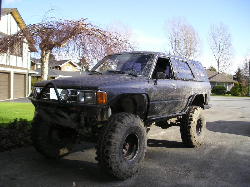 Toyota rear leafs up front, 63" Chevies in the rear with 2" block, OTT Highsteer kit, Steering box moved forward 2" and up 1", Front and rear diff protection, Detroit soft locker in the rear and welded front locker, Custom shock mounts