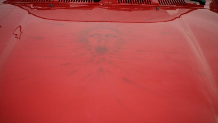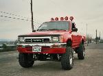 shaved door handles, gas tank door, and tailgate handle, roll bar and kc lights. foot steps and blacked out taillights. full custom red paint job.