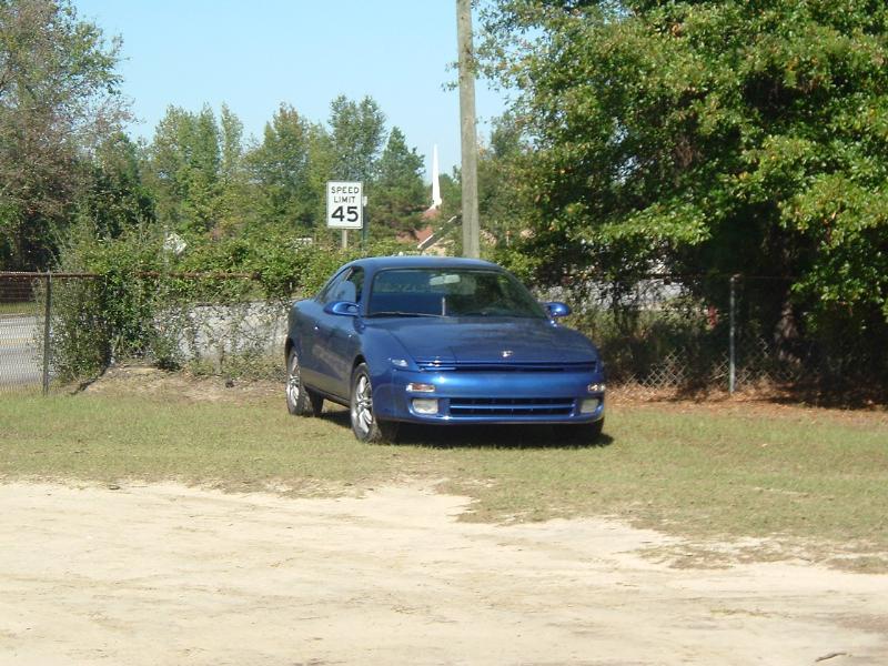Royal Blue with Flakes, and a pearlescent clear coat.. Custom mixed by Little Custom Shop. 16'racing rims.