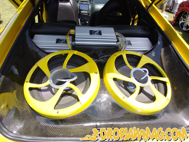Fold Out TV, Planet Audio Component Sets, Planet Audio BB Digital Amps, Planet Audio 15" Zetar Woofers, Hand Build Carbon Fiber Enclosure and Amp Rack