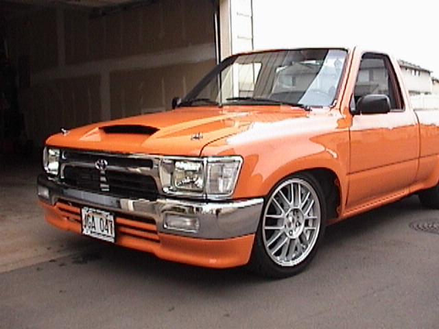 4x4 front fenders 4xfront bumper clear corners eurolite h4 headlights shaved wiper cowl,passenger door handle gasdoor lock drivers door lock tailgate handle molded roll pan truck is 95 mustang orange w/orange pearl mixed in the base