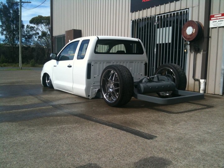 Bagged all round, half chassis rear clip, canti 4 link, 2 Viair 480Cs, etc etc