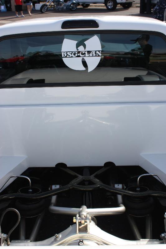 Full custom rear, bags on diamond lowers, through the frame bell crank shocks, Slams up front conitechs out rear. Rides like a dream.
