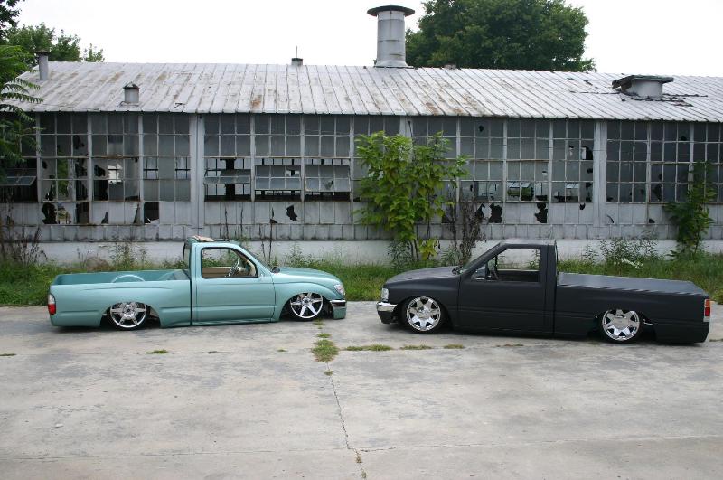 3 and a quarter inch body drop that lays flat rocker with no Z, fully reversed triangulated 4 link that rips my drive shaft out of my transmission and pole vaults me through the air everytime i hit the brakes. 8 inch notch, custom cross members, bagged with 1/2 inch silver parker air line line, 3/8th's airlift valves, 5 gallon tank, 2 smc 3/8th's water traps, 2 viair 380 compressors, RE-6 front and 13inch insane lift rear fag bags! All parker push to connect fittings with absolutely no leaks. Raised gas tank cross member.