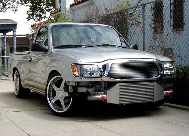 4runner chrome front bumper, chrome rear bumper, grill surround & door handles, Street Beat billet grill, Trenz billet antenna, VIS carbon fiber hood, shaved tailgate handle, euro tails, snuglid