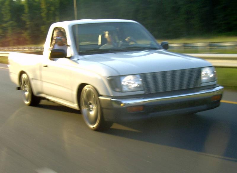2RZ 2.4l, AEM Short Ram intake with custom heat sheild/airbox with ram air inlet through corner lamp, LC Engineering Stainless Ceramic coated header, Magnaflow XL stainless, removed EGR, Speedlimiter override
