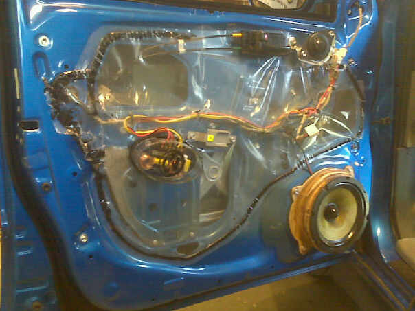 JVC double din with built in blue tooth, 6 1/2" speakers in the kick panels, 8" memphis midbass speakers in the doors, 6 1/2" speakers in the rear doors, and a 15" planet audio sub being powered by a Xtant 1500.1 amp