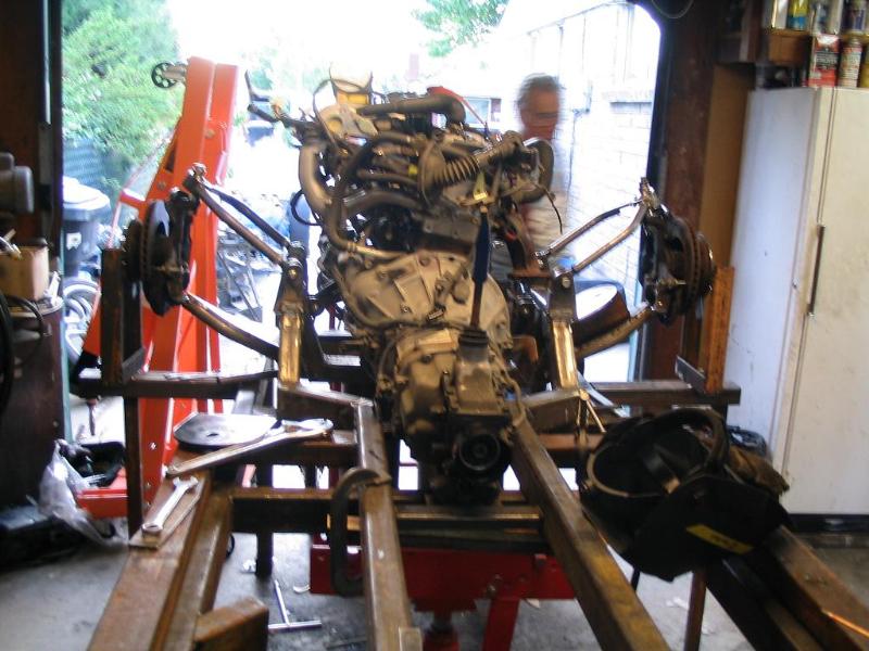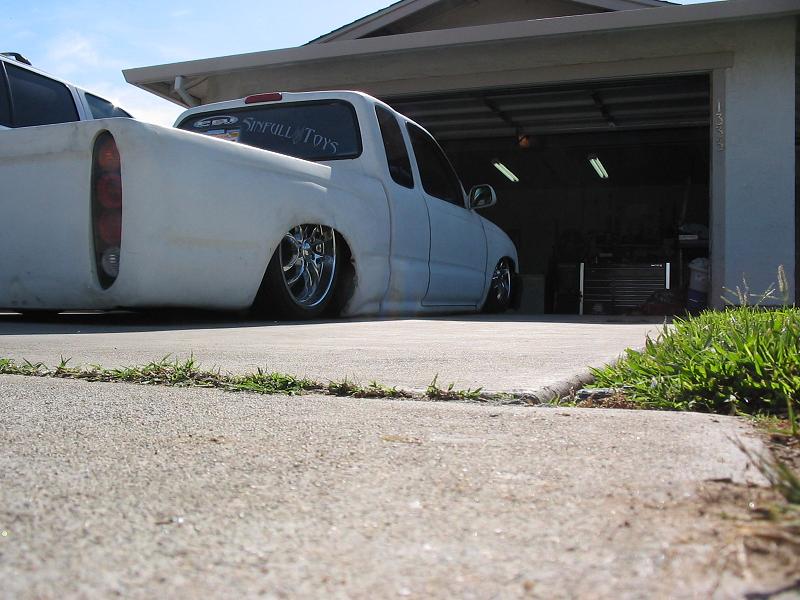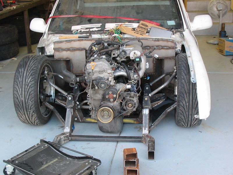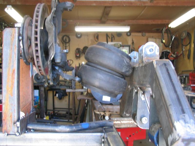 custom built arms front and rear. front will have uniballs on uppers and modified factory lower ball joint mount i.r.s out of 91 toyota celica half shafts shortened 2.5 inches. soon to have a cantilever on rear. rs-7 bags all the way around. currently getting a full custom frame front to rear
