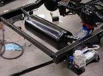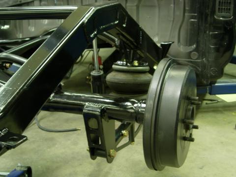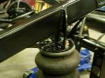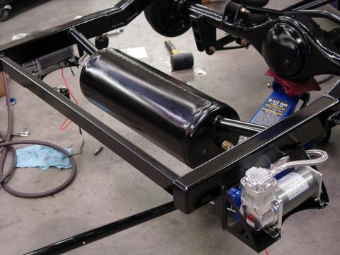 Firestone 2600 big bags, custom front bag mount, modified 3/16” plated frame, modified radius arms, DJM upper arms, ½” 350 psi valves, ½” fittings, Reverse bushing modified 4-link, boxed and super notched, custom shock and bag bridge, two firestone 9210 compressors, two Firestone 5 gal. ½” port tanks, custom tuck-up rack, port Doetsch Tech shocks, custom mounts for relocated fuse box and evap canister, Battery & gas tanks relocated to bed, extended wire harness, front wheel wells cut and beaded, cut and tubbed firewall to fit 19’s, Alston tubs, custom hinged bed cover, KP Playstation controller (air)