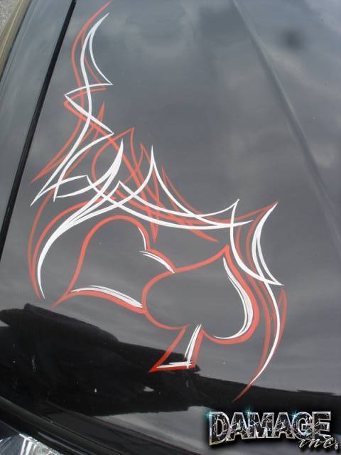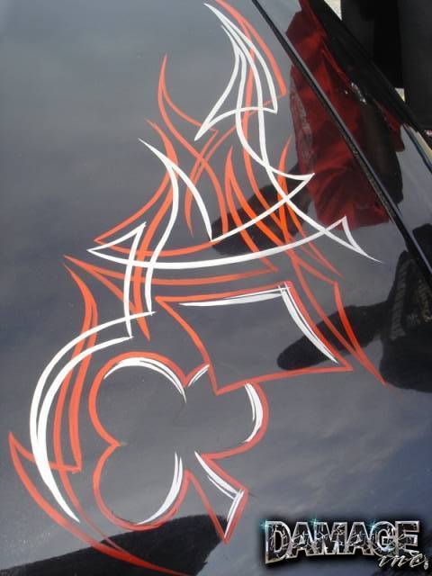 Shaved emblems, smoked tail lights, billet grill, pinstriping on hood by Dougy Fresh