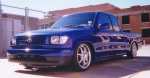 Shaved antenna, hoodsquirters and front turn signals, molded roll pan and frenched license plate, flush mount tonneau, billet insert, clear markers and clear candied tailights, Paint is 2000 Kia Sephia Sport blue(Trust me it really is a kick ass color)