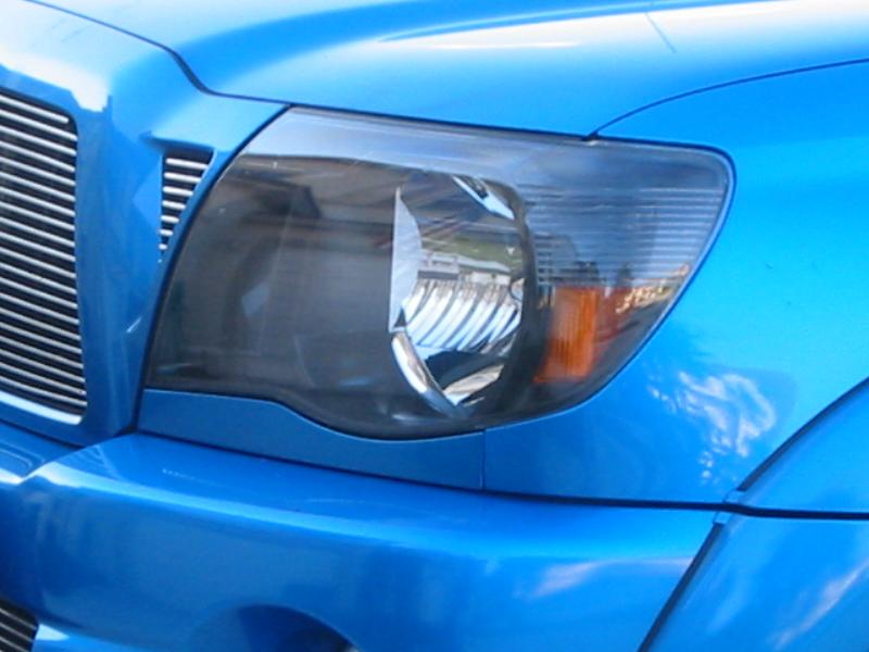 Westin front bull bar and side steps, T-rex billet grilles, replaced the chrome grille with a blue one, ARE LSII tonneau, black headlight mod, TRD scooped hood