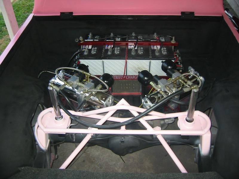 8" & 10" chrome showtime cylinders, flipped front ball joints,cut out wheel wells,