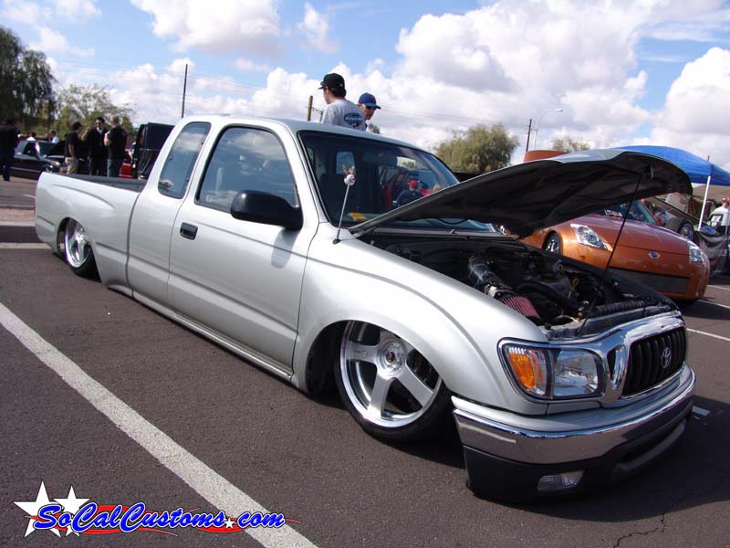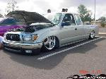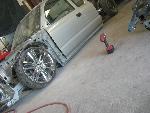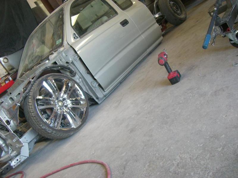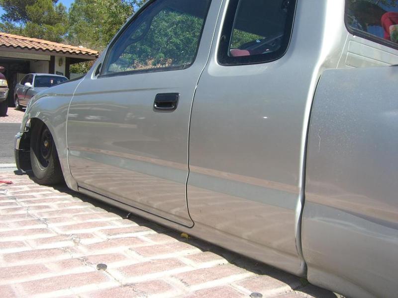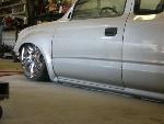 Stock Floor full frame. RX7 IRS fast bagged. Custom lower control arms with uni-balls, heim ends and D.O.M. tubing by Rudy's Rod & Custom. Slam Specialties sponsored 1/2" Digital Stealh Valves controlled by Slam Specialties Digital Stealth Controller, Slam Specialties rs-62 1/2" port all four corners. Sponsored three all silver Air Zenith compresors.