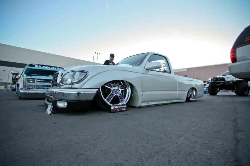 2002 Front end, shaved door handles, molded tailgate and rollpant. Painted White Diamond By Bryan @ RF Customs.