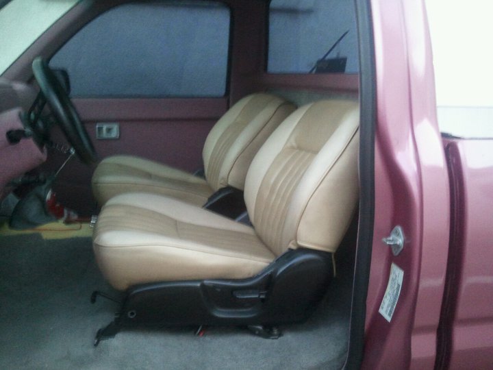 Pink tweed, Cut down and wrapped seats.
