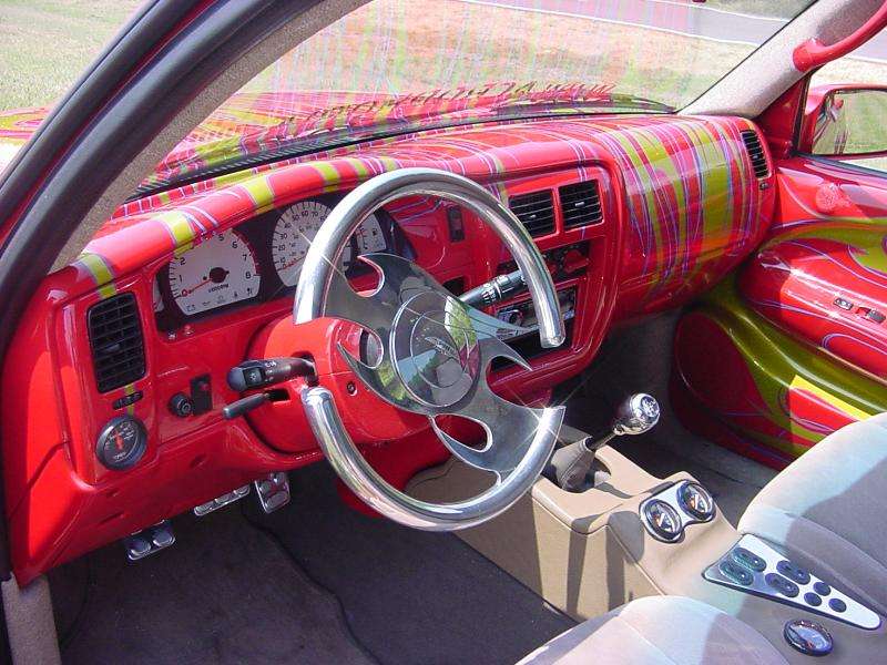 tan tweed and leather, painted dash, door panels, custom console and speaker box