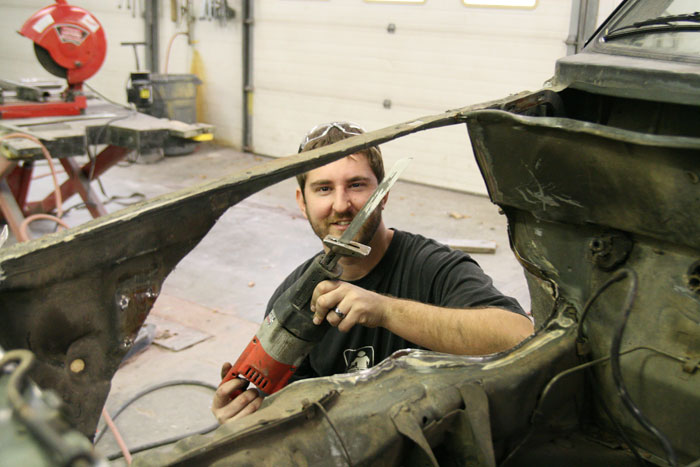 mostly OG appearance... shaved lower trim and tonneau snap holes so far. Replaced half a bedside and took 1/2 the truck down to bare metal. Swapping front clip sheet-metal to single round light Cabriolet setup. Currently in primer.