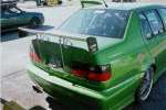 Green and silver metalflake, checker flag ghost painted covering both sides of the car, Custom made body kit ( thanx to jim hall ), Generation II sport mirrors, Light Green Tint all around the car, Bo System twin tipped exhaust, Neon light kit under car ( Green ), custom made carbon fiber spoiler, air slits in the fender walls, and in the hood, for that racing experience, green marker lights, and green fog lights, with strobes in the fog lights ( green )